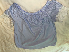 White House Black Market Blouse 2 Black Floral V-Neck Lace Trim Contrmporary