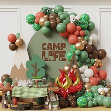 Enanal One Happy Camper Balloon Garland Arch Kit 146pcs Sage Green Brown Camo...