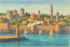 Rhodes Coloured Pencil Art Panorama (AI GENERATED IMAGE)