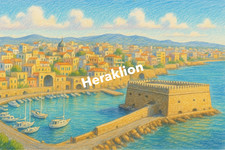 Heraklion on a Sunny Day, Coloured Pencil Art Panorama (AI GENERATED IMAGE)