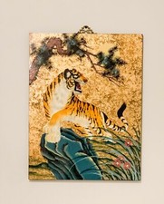 Wooden Wall Plaque in Tiger Design Lacquet Hand Painted