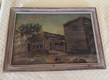 VINTAGE NATIVE AMERICAN INDIAN PAINTING TAOS ADOBE HOME DESERT LANDSCAOE BIG BOW