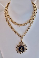 Dauplaise Pendant Necklace Black Pearl French Reniassance Royal Crest 33" N101