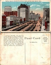 Detroit MI Cadilllac Square from County Building 1927 White Border Postcard w59