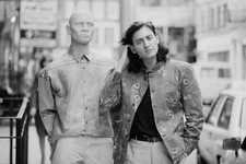 British fashion designer Scott Crolla with a mannequin wearing Crol - Old Photo