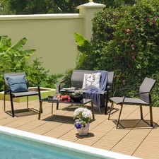 Topbuy 4PCS Patio Conversation Futniture Set w/ Fabric and Anti-Rust Steel Frame