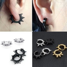 Punk Rock Stainless Steel Spike Circle Huggie Hinged Hoop Earrings for Men Women