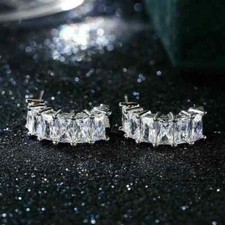 Women 925 Silver Simulated Zircon Round Hoop Huggie Earrings Ear Clip Jewelry