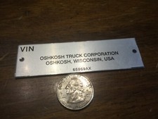 Oahkosh truck Aluminum VIN plate tag military 3 1/2 x 1 x 1/16 thick 65969AX new