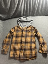 Oshkos Hooded Flannel Shirt Boys Size 12/12A Yellow Plaid Long Sleeve