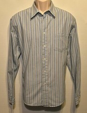 Aeeopostale Men's Button Down Shirt Size L Long Sleeve Blue Strip 1987
