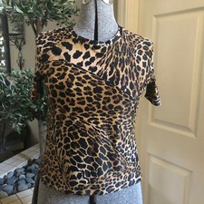 CLASSIQUES ENTIER Black Tan Brown Animal Print Draped Neckline Knit Top Size M