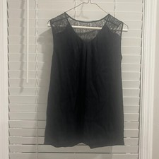 Women's black lace tank top romantic sheer lined sleeveless Classiques Entire L