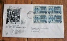 HONORING THE YOUTH OF AMERICA 1948 YOUTH MONTH 1948 STAMP BLOCK ARTCRAFT CACH FD