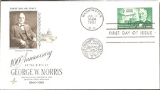SENATOR GEORGE NORRIS TENNESSEE NORRIS DAM CLINCH RIVER ARTCRAFT CACH 1961 FDC U