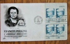 FRANCES PERKINS FDR CABINET MEMBER 1ST WOMAN 1980 ARTCRAFT CACH FDC PLATE#BLOCK