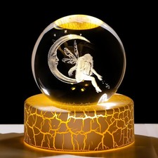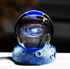 2.36''3D Galaxy Planet Ball with Space LED Lighting Base Glass Sphere Miniatured