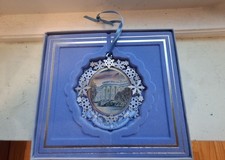 Spode 1998 Christmas Tree Ornamrnt Porcelain Oval Gold Trim Holly Design
