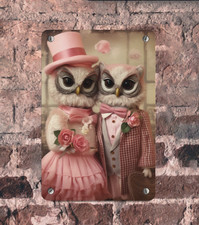Victorain Owl Couple Valentines Day Portrait Pink Wall Decor Metal Sign 8x12