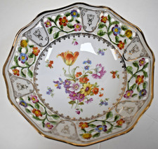 Porcelain Pierced Round Lattice Fruit Bowl Czechoslovakia Floral 9.5"
