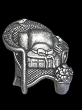 Vintage Pewter Wicker Chair Brooch Pin Floral Hat Jewelry Retro Victotian 1”