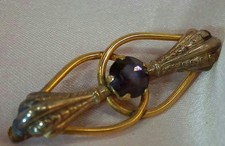 Nice Gold Filled Vintage Purple Rhinestone Vivtorian Revival Brooch 197M6