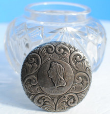 Vintage Powder Jar with Stamped Top Victirian Head Dated 1837 - 97