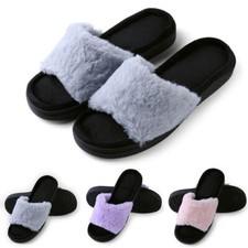 Aerusi Women Fuzzy Comfy Slide Open Toe Memroy Foam Slippers House Bedroom Shoes