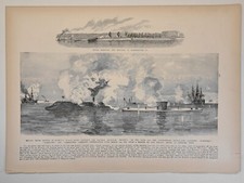1896 Victorian Art Engraving, Hampton Roads Monitoe Merimac, Yorktown, Jamestown