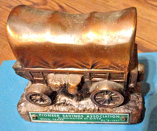 Vintage Banthrico Covered Wagon Coin Bank PIONERE SAVINGS WACO TEXAS NO KEY