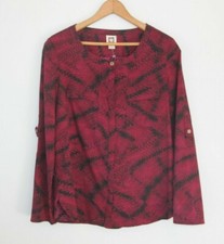 Anne Klein Shirt S Burgundy Black Snakeskin Blouse Button Down Tabbed Sleeve 685