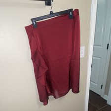 Anne Klein Women's Red Solid A-Line Ruffle Knee Length Skirt Size 6 Regular