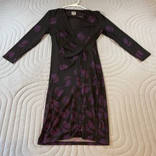 Anne Klein Classic Faux Wrap 3/4 Sleeve Dress Womens Small Black Floral Print