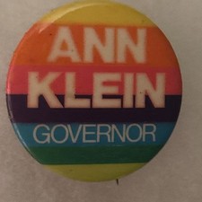 Vintage 1973 Ann Klein for NJ Governor Rainbow Campaign Political Pin Button