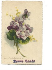 FANCY Card - Old Postcard - Flowers - Thoughts C. SMALL Happy New Year