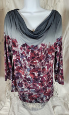Anne Klien AK Womens L Blouse Long Sleeve Floral Ombre Poly Spandex Pullover