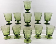 11 Seneca Brocado Green Juice Wine Glasses Set Vintage Emboss Retro Stemware Lot