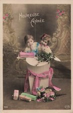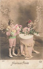 CP HAPPY YEAR LITTLE GIRL BOY IN GIFT BOX - ROSES FLOWERS - 31513