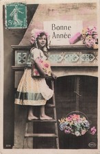 CP HAPPY YEAR LITTLE GIRL WITH ROSES FLOWERS WINDOW GIFT CIRCE - 43763