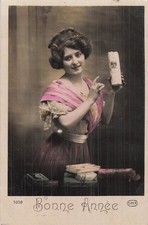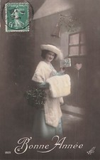 CP HAPPY YEAR WOMAN WITH GIFT ENVELOPE STAMPS - 9566