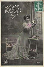 CP HAPPY YEAR WOMAN DRESS TRAIN GIFT ROSES FLOWERS - 14137