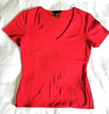 Carilyn Vaile Vintage Red V-Neck Short Sleeve Shirt Top Small Chamoni Nylon USA