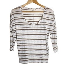 CALSON Tan & Antique White Stripe 3/4 Sleeve Ballet Neckline Top Size M