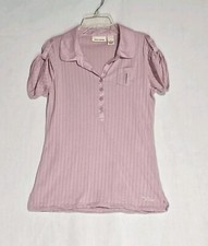 DKNY JEANS Collared Shirt Cap Sleeve Pullover Stretch Pink Cotton Women's Medium