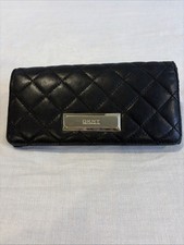 DKNY Quilted Black Leather & Faux Leather Bifold Wallet Snap Close Classic