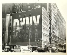 VTG 1990s Photo NYC City Street Scene Huge DKNY Billboard Sign Cars B&W Snapshot