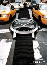 DKNY watch print ad 2002 giant watch on city street, cars