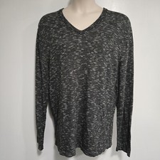 DKNY Jeans Sweater Mens Sz XXL Black Marled V Neck Long Sleeved Soft Pullover
