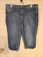 Earl Jeans Womens 12 Denim Capri Jeans Rhinestone Pockets Stretch Crop Used Read