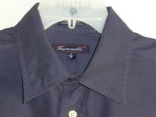 Facconnable Size Large Navy Blue White Dress Shirt EUC!!